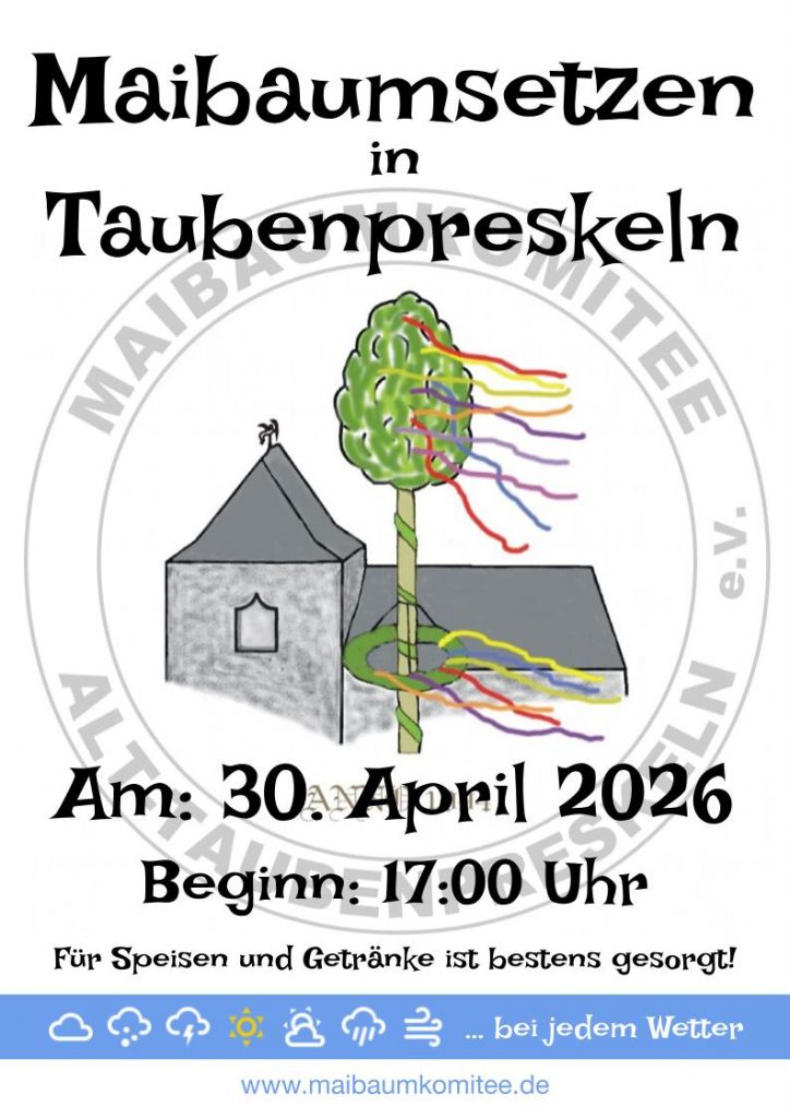 Es ist bald wieder soweit. Der Frühling ist da und in Alt-Taubenpreskeln ist am 30. April wieder Maibaumsetzen!